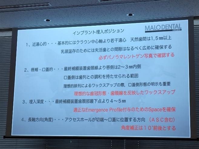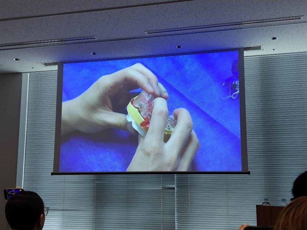 午前中は座学からスタートでした。こういった学術大会では多くの場合は技工士であれば自身の作製したものの症例を発表していくことが多いのですが、今回は『インプラントの歯を作るためにはこういったことを必ず知っておいたほうがよいことをまずは学んでほしい』という演者の先生の気持ちがあり約2時間学生時代に戻ったように知識の再確認をすることができました。なかなか自分で本を開いて毎日確認することは近年減りましたがこういった時間は大切であることがわかりました。