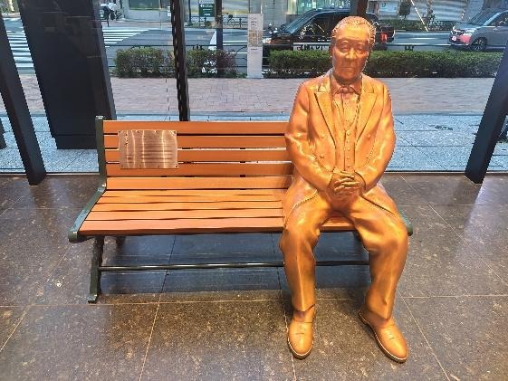 で、ホールの1階に皆さまのお手元でもよくお見掛けする方の銅像がありました!!