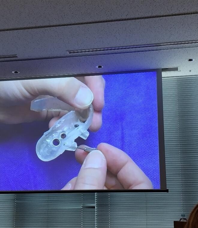 午後からは実際に作製する手順であったり、こういったことを気を付けるとよいといったことを学びました。日頃から当院ではたくさんのインプラント手術を行っていますが、一度に多くの本数のインプラント手術をする方にとっての技工士として知っておかなければいけないこと、その手術時に使用するものを作製する手順について深く学ぶことができました。アナログからデジタルまでの様々な手技を見せていただくこともでき久しぶりにわくわくする感じがありました。ここでは手を使っての作業の写真ですが、近年はデジタル技術によってほぼすべての工程がコンピュータの画面の中でできるようになりました。ですがデジタルだけで人の手が入らず完成まで行うことはまだできません。私も止まることなく、アナログもデジタルも両方知識をレベルアップさせていく必要があるな~、まだまだ学ぶことがたくさんあるな~と感じる1日になりました(⋈◍>◡<◍)。✧♡