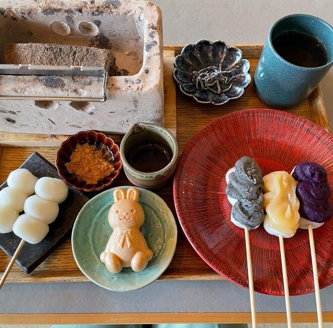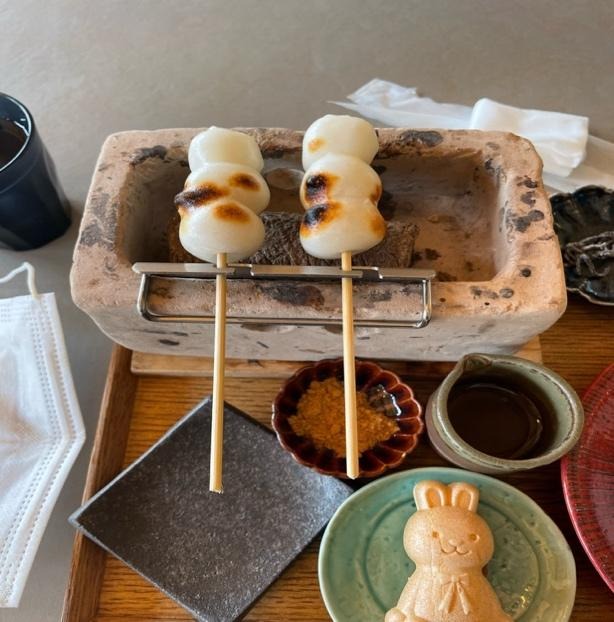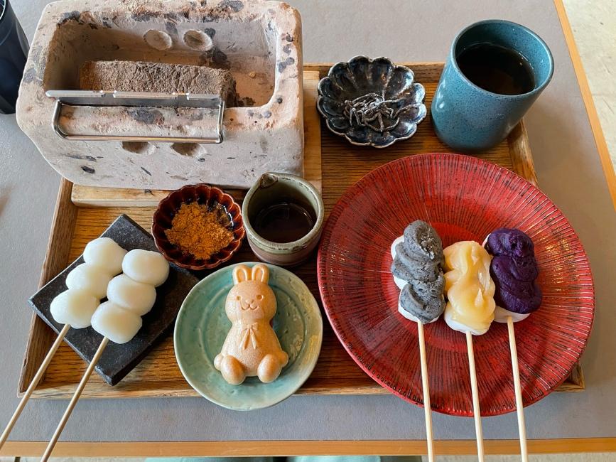 表面はカリッと中はモチモチとろとろで最高に美味しかったです♪みたらしときな粉で頂くのですが、それとは別で10種類の味の中から3種類選べるお団子と、かわいいうさぎの最中までついていて、「こんなにお団子ばっかり食べられるかな~」と心配していたのですが、美味しすぎてあっという間にペロリでした!