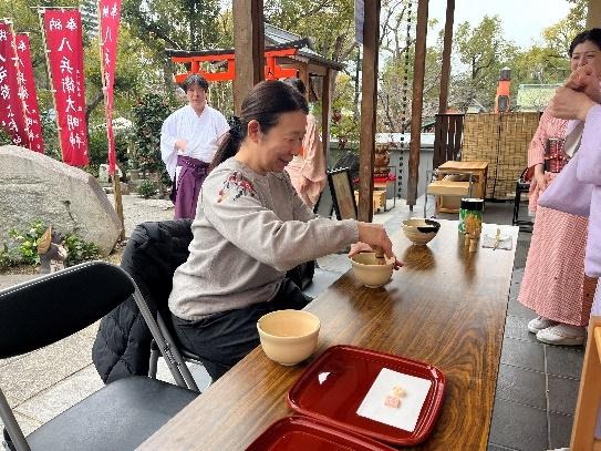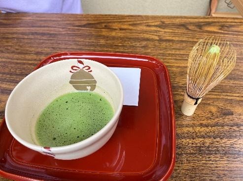 当日はさまざまな催しが行われており、その中でも印象に残っているのが抹茶を点てる体験です。普段なかなか触れる機会のない茶筅を使い、教えていただきながら丁寧に点てました。思っていた以上に繊細で、きめ細かい泡を立てるのが難しく、お茶の奥深さを感じました。