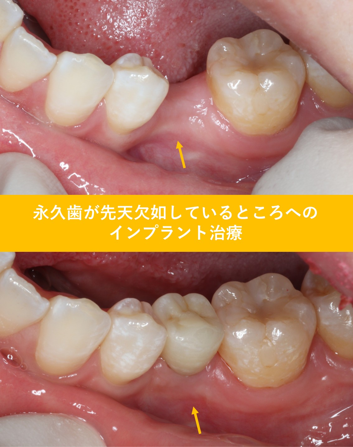 症例紹介 左下に永久歯が先天的にない部分へのインプラント治療を希望されて来院された患者様 左下に永久歯が生まれつき1本少なく乳歯が残っていたところが抜歯となり、インプラント治療を希望されて遠方から当院に紹介来院されました。永久歯の先天欠如は珍しいことではなく、特に第二小臼歯(前から5番目の歯)に多くみられます。前後の歯も含めて虫歯もなく、このような状態を回 …