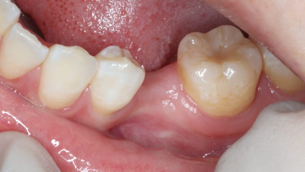 永久歯の先天欠如は珍しいことではなく、特に第二小臼歯(前から5番目の歯)に多くみられます。前後の歯も含めて虫歯もなく、このような状態を回復させるのにはインプラントが最適です。