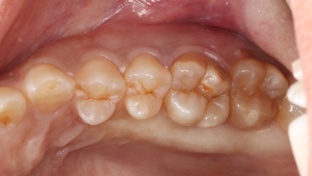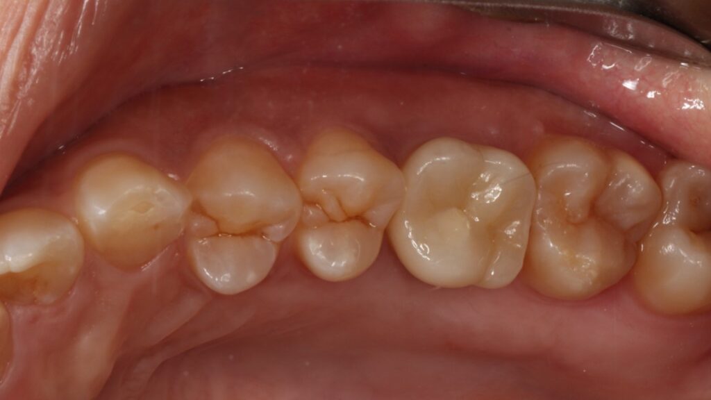 今後長期的なことを考えると両隣の歯を削ってブリッジをするのは極力避けたいという患者様の思いもありインプラント治療をすることになりました。