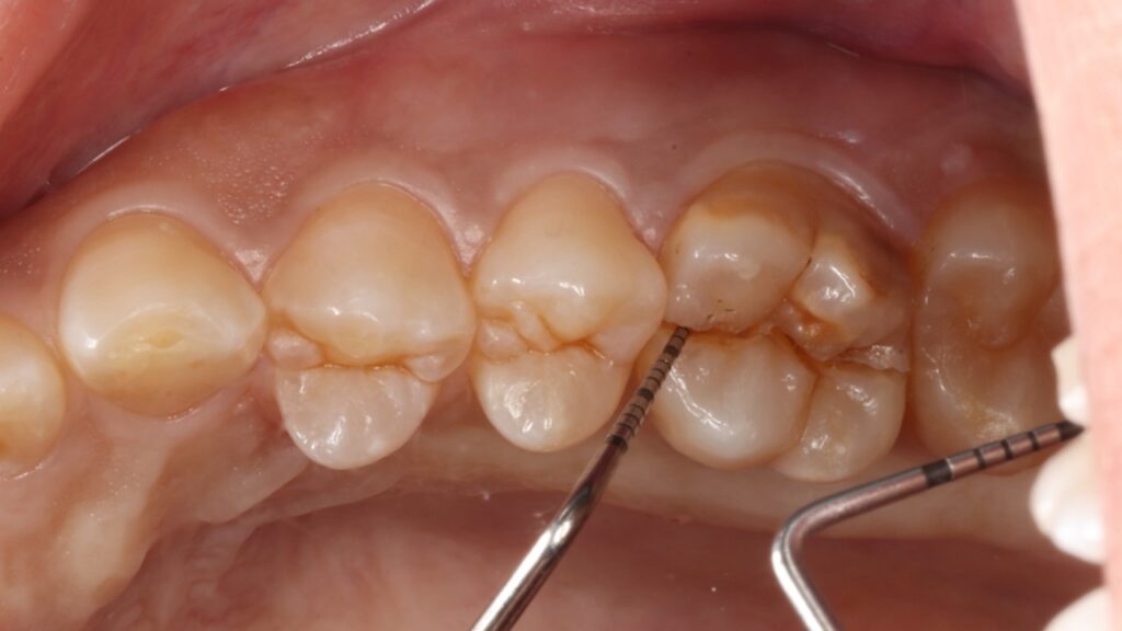 虫歯も歯周病もなく、一見何の問題もないように見えましたがマイクロスコープ(顕微鏡)で詳しく確認すると噛む力に歯が負けて真っ二つに割れてしまっていました。