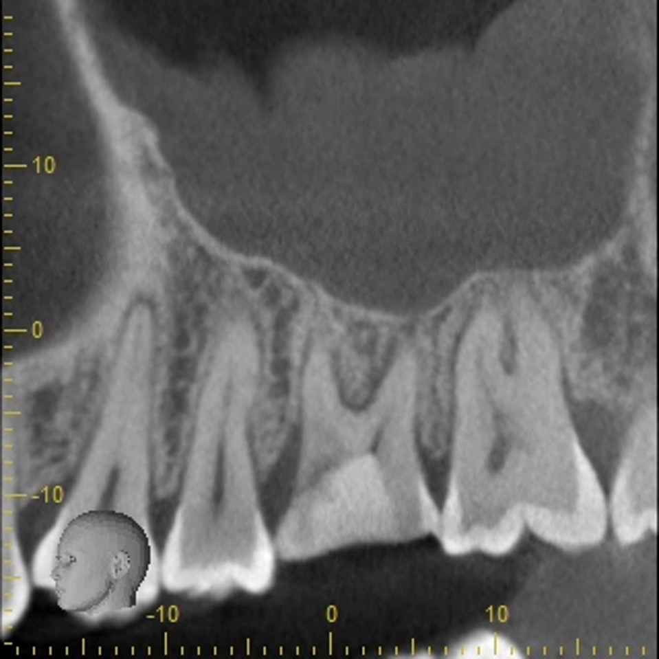 このように健康な歯が真っ二つに割れることはめったにないのですが、こうなると神経に触る様な強い痛みが出ますし、CTスキャンをとると上顎洞炎にもなっていました。